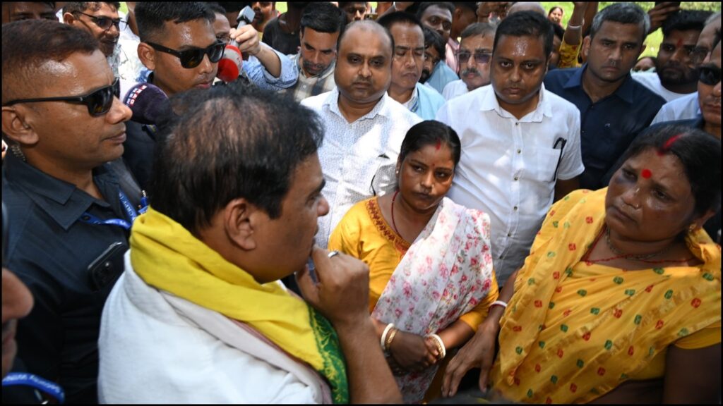 Assam CM Himanta Biswa Sarma meeting people in Dhubri. (Himanta Biswa Sarma/X)